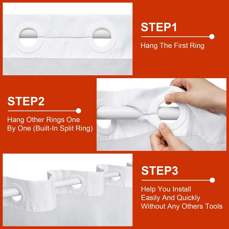 - ๐๐๐๐๐๐ ๐๐๐๐๐: This no hook shower curtain with snap in liner is made of carefully selected polyester fabric materials that are soft to touch and durable. The replaceable snap-on/off liner is easy to remove and convenient to clean. The double-layer design provides an ultimate waterproof barrier to keep water inside the shower while preserving privacy.