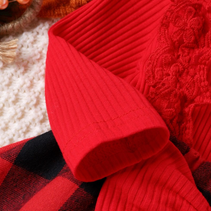 LIKPOJA Newborn Baby Girls My First Christmas Outfit Clothes Headband Infant Bodysuit Red Skirt Tartan Plaid Dress for Toddler Baby Girls Santa Romper(Red F,3-6 Months)