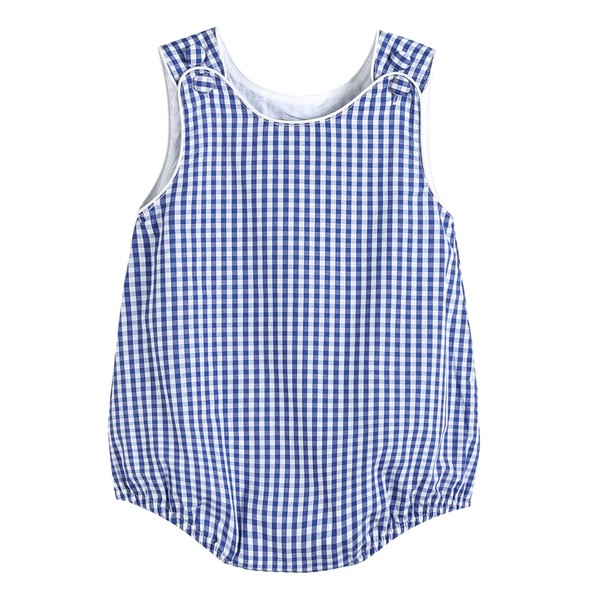 Lil cactus Baby Boys and Girls Dark Blue Gingham Bubble Romper, 18-24 Months
