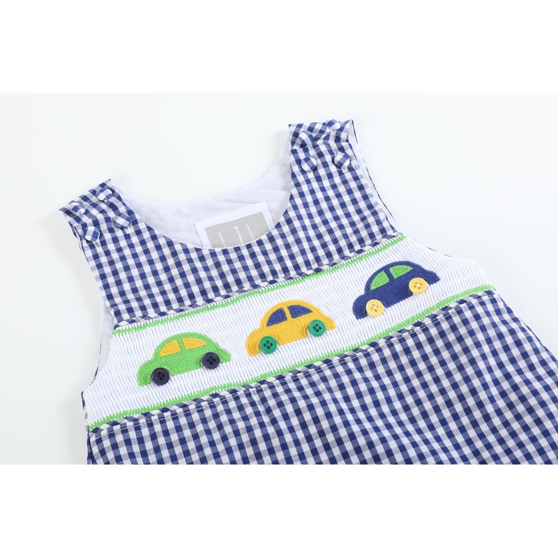 Lil cactus Blue Striped Car Smocked Shortalls, 6-12 Months