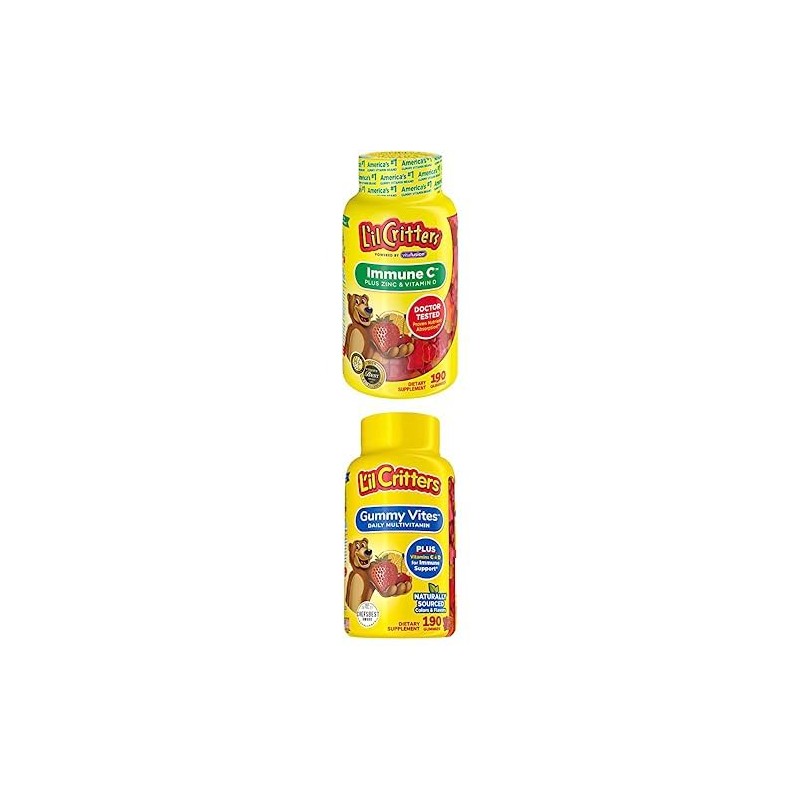 Lil Critters Bundle of Lil Critters Kids Immune C Gummy Supplement 190 Count (95-190 Day Supply) + Lil Critters Gummy Vites Daily Kids Multivitamins Fruit Flavored Gummy , 95-190 Day Supply, 190-count