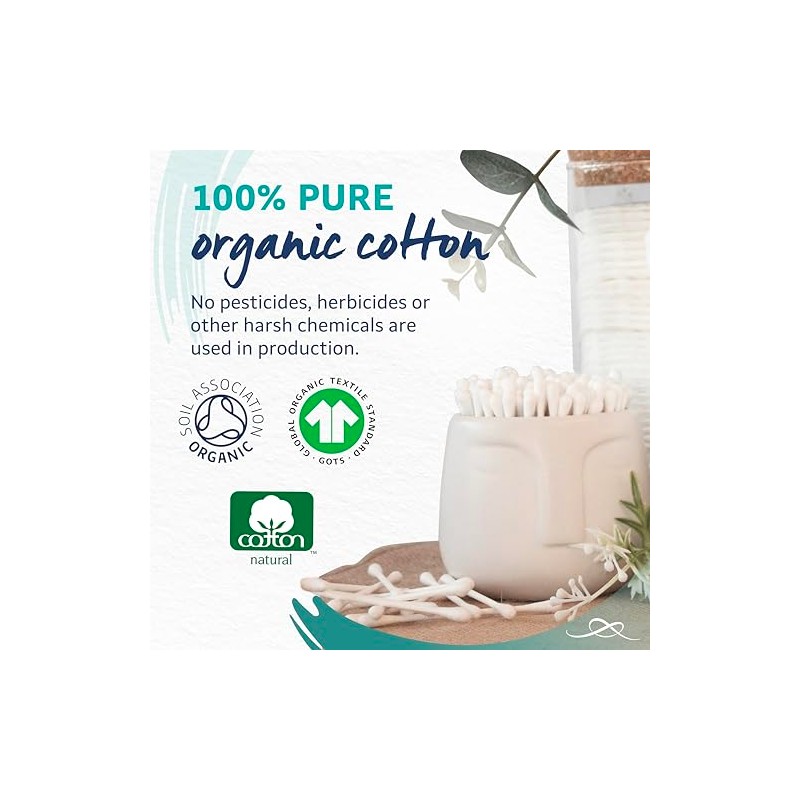 - CERTIFIED ORGANIC PURE COTTON BUDS - Our cotton bud tips are made from 100% pure organic cotton, certified to GOTS (Global Organic Textile Standard) by the Soil Association. No synthetic pesticides, herbicides, genetically modified organisms (GMOs) or other harsh chemicals are used in the production of Lil-Lets Cotton Wool