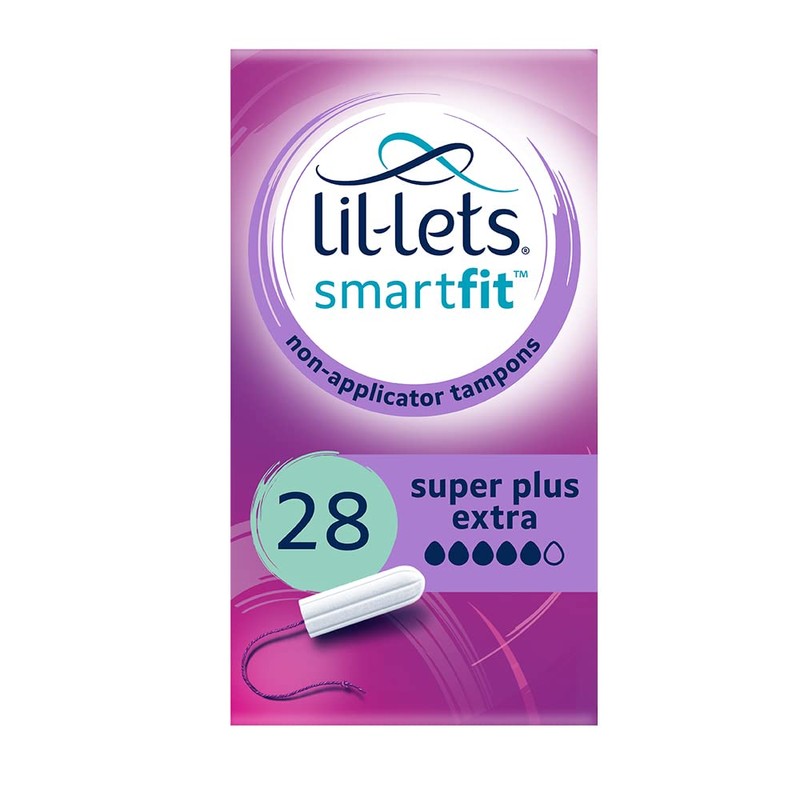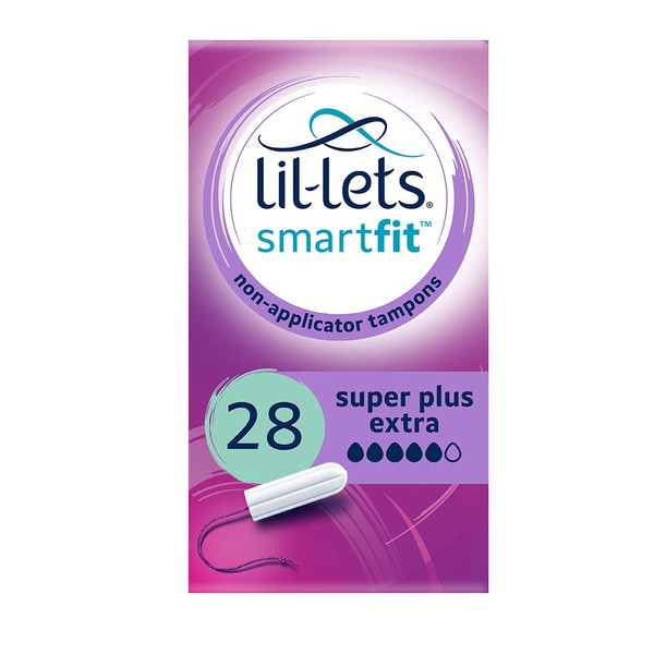 Lil-Lets Non-Applicator Super Plus Extra Tampons, 28 Count (1 Pack), for Very Heavy Flow, 5 Droplets, Plant-Based, SmartFit™ Non-App Tampon