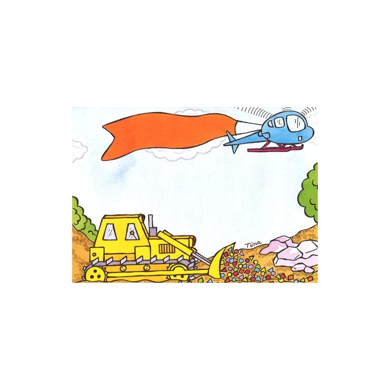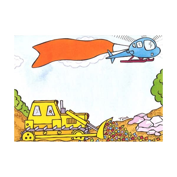 Lil Pickle Boys Construction Blank Notecard Set, Flat Style, 6.5"x4.75", 8 Pack w/Envelopes, Fill-in Style, 8 Pack