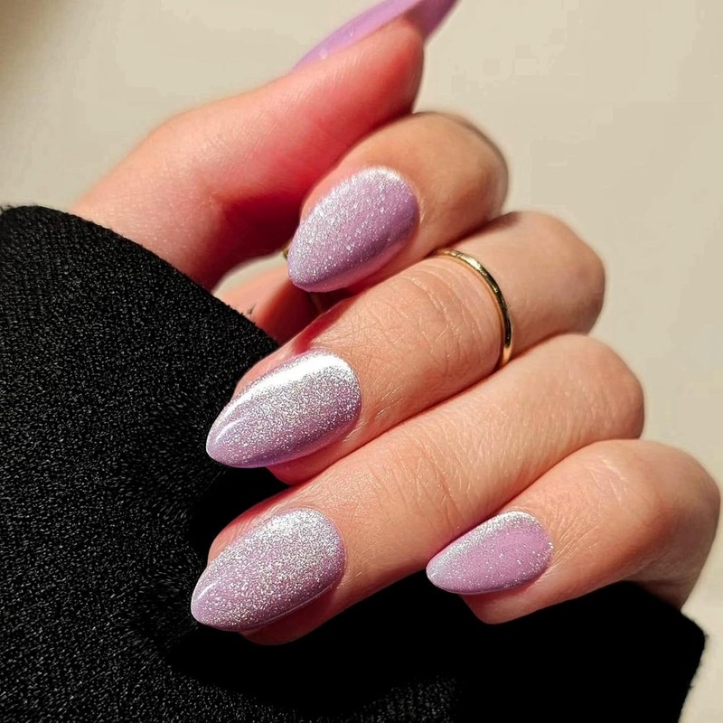 Lilac Glitter False Nails Almond, SXVME Cat Eye Press on Nails Short Almond, Sparkly Shiny Fake Nails, Cute Bling Glue on Nails Medium Stick on Nails for Women Party Holiday Wear, 30 Pcs