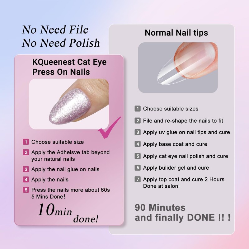 -KQueenest press on nails are easy to use,it only takes a few minutes to complete a manicure.