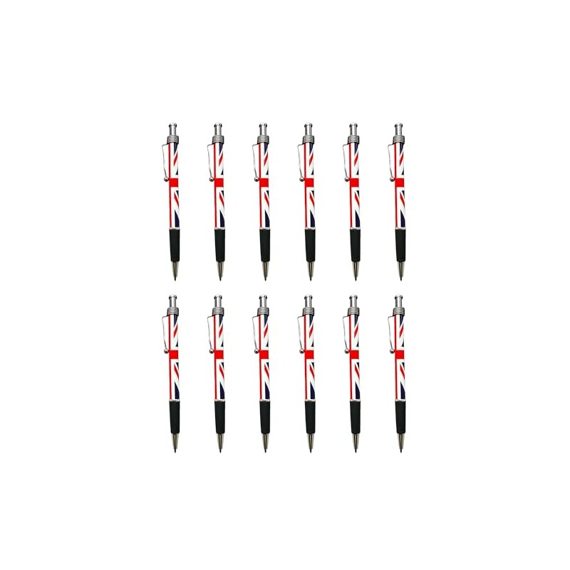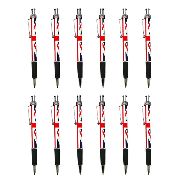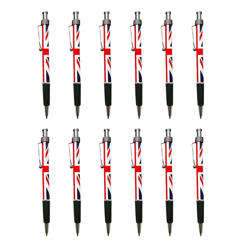 LILAJ Set of 12 Union Jack Flag Retractable Ballpoint Pens Souvenir & Stationery Patriotic Writing Instruments for Office, School, and Gifts Party Decoration