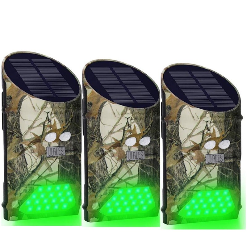 LILBEES Solar Deer Feeders Lights Motion Activated Green Hog Lights Night Hunting for Predator Coyote Pig Varmint(G300)(3-Pack)