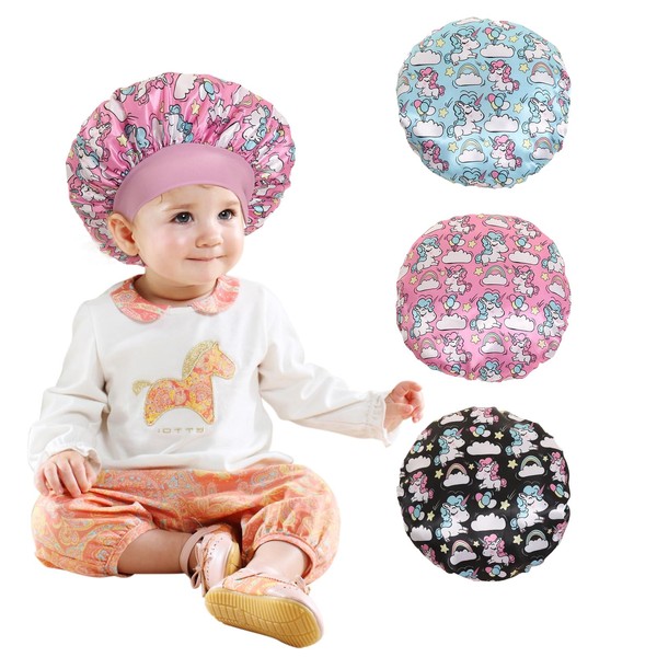 Lilbitty Pack of 3 Satin Baby Unicorn Caps for Curly Hair, Toddler Cap, Baby ...
