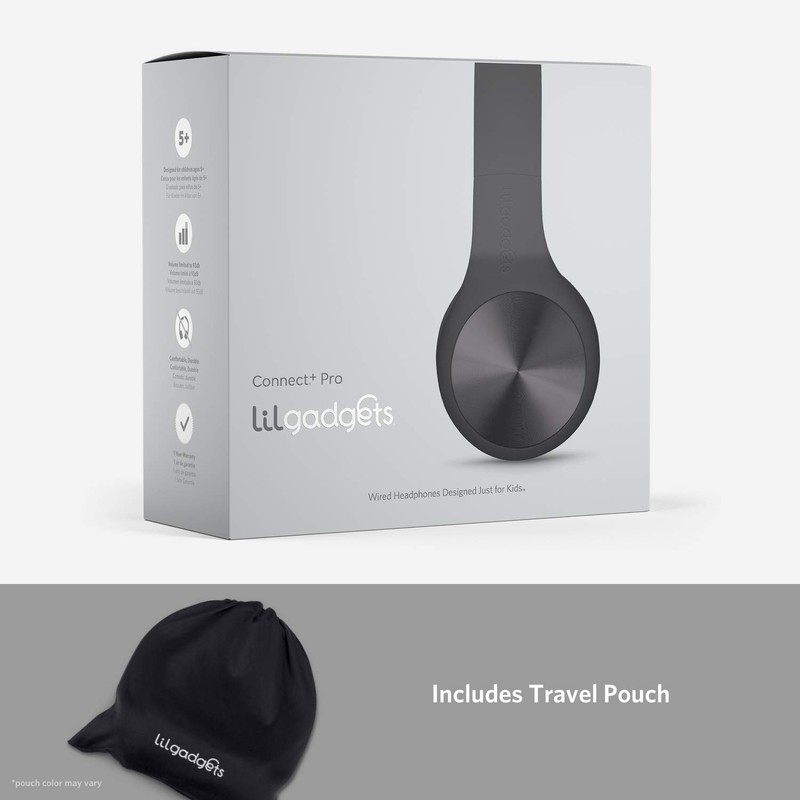 LilGadgets Connect+ Pro Kids Headphones Black Headphones - Designed With Kids' Comfort In Mind, Foldable Over-Ear Headset With In-Line Microphone, Audiofones, Auriculares, Black