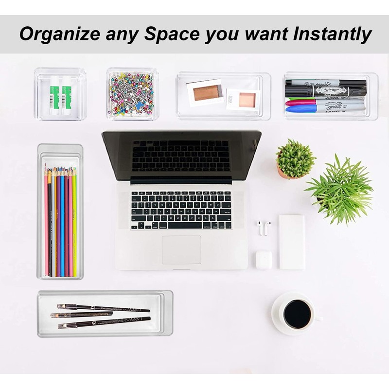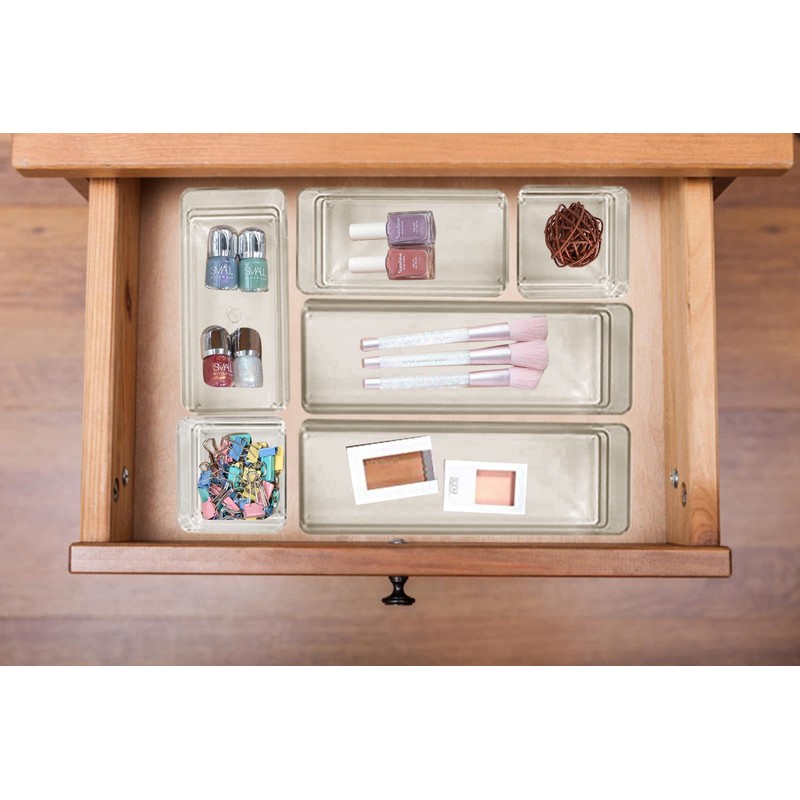 - ERGONOMIC DESIGN TO EDIT YOUR HOME AND DECLUTTER: Features curved corners, making it easy for you to clean. Our organizers are clear; hence it's easy to identify the contents in each organizer. They also come in different sizes, making it possible to partition your items in the right drawers.