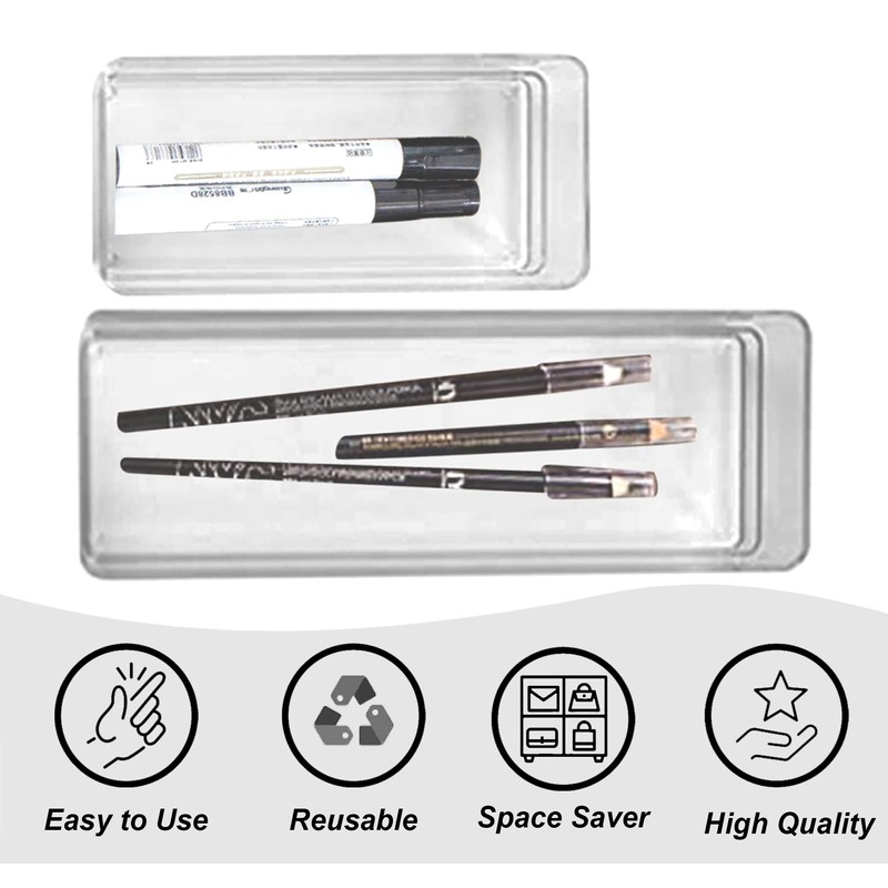 Get to organize your space with our Vanity and desk drawer organizer. Instead of having to go through a pile searching for an item, our clear acrylic organizer helps you neatly arrange and easily retrieve your items. Make your space look neat and inviting by incorporating our acrylic organizer. With each purchase you make you get 2 pieces, 1 piece in medium, and 1 piece in large. The pieces can easily fit in any drawer; you can also place them on tabletops based on your design preferences. Our organizers will blend well with any interior design style, without drawing too much attention.