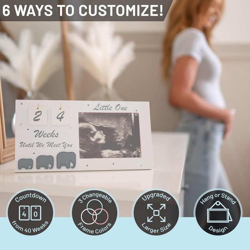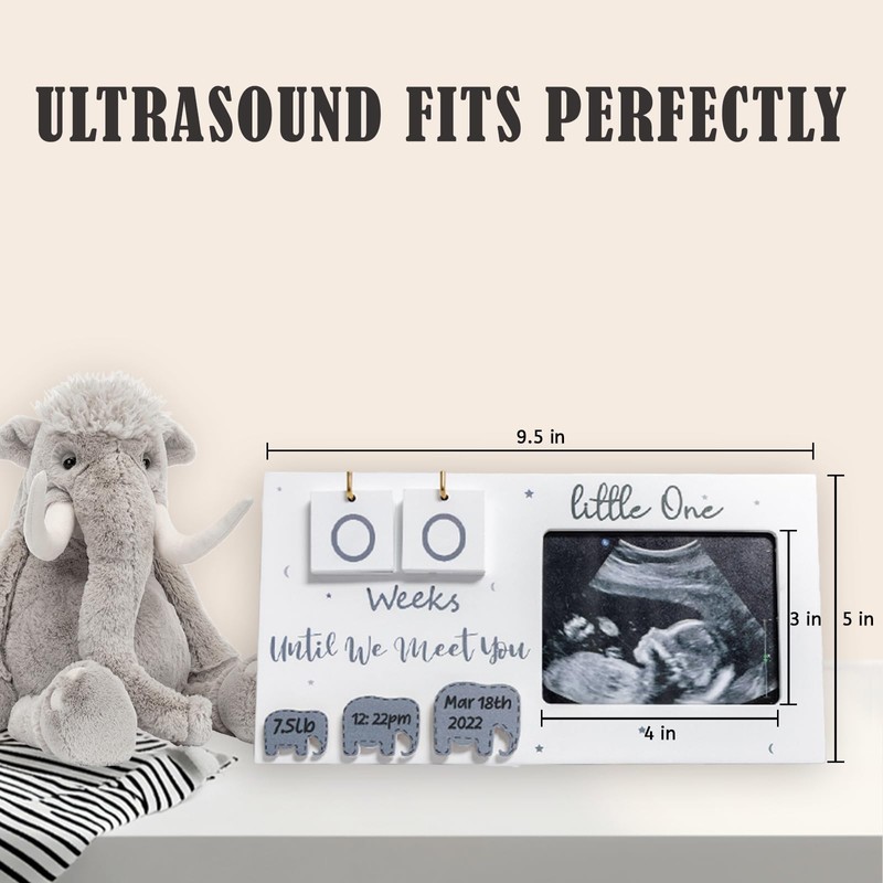 - Whimsical Design: With its cute elephant accents and sweet message, "Weeks until we meet you, little one," this frame adds a charming touch to any nursery.