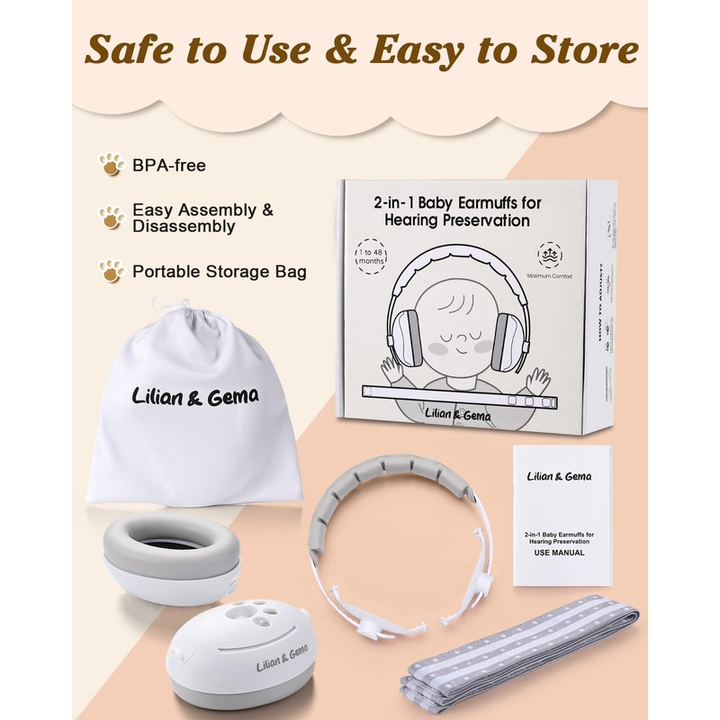 - Safe Comes First: Lilian&Gema baby earmuffs noise protection are crafted from premium quality, child-safe materials, blending an ABS shell with foam padding. Enhanced with ultra-soft fabric and polished. Free of silicone and BPA without fear of allergic reactions or irritation. Easy to clean and built to last, they're designed to withstand the test of time