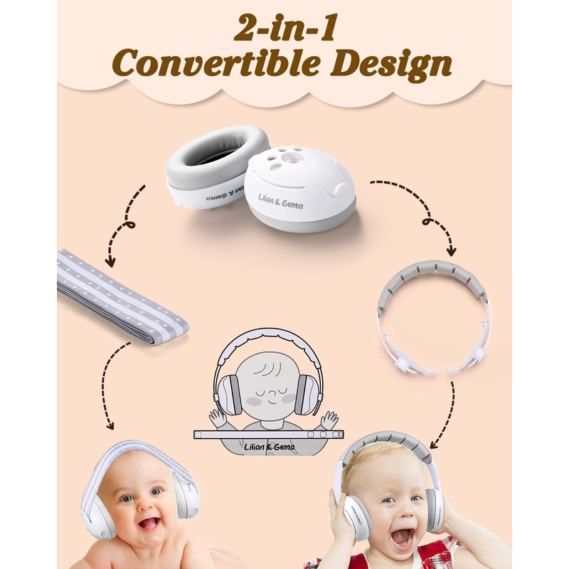 - 2-in-1 Design: Lilian&Gema baby headphones for noise boast a versatile 2-in-1 design, suitable for infants aged 3 to 48 months. Featuring a three-position adjustable anti-slip elastic headbands and traditional headphones, both are ultra-lightweight and adjustable, support sleeping and activity according to the baby's needs and preferences, Whether outdoor and indoor