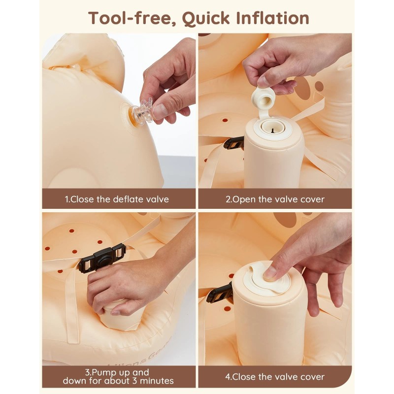 Quick Inflation with Ease: Discover the ease of our inflatable Baby Seat with its built-in air pump. Inflate within minutes using a simple up-and-down motion, no extra tools required, your little one can enjoy a comfortable sitting experience whenever needed