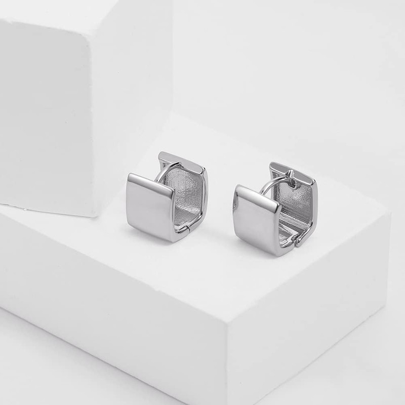 - Geometric Earrings: Adorn your ears with the richness of silver plating. Our square chunky huggie earrings boast a captivating shine that captures attention and exudes a sense of luxury, ensuring you're the center of attraction.