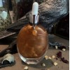 Wrapped carnelian bottle charm attached to 1.7oz glass flat round dropper bottle.