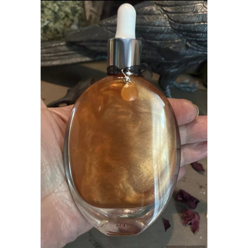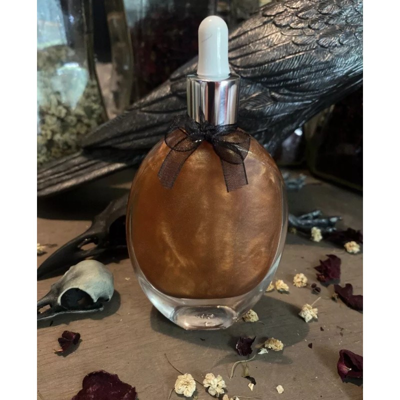 All scents are made with ALMOND OIL base carrier, cosmetic grade mica and various fragrances oil. Skin safe so you can wear, use in bath, ritual work, altar, candle refresh, anointing, etc…