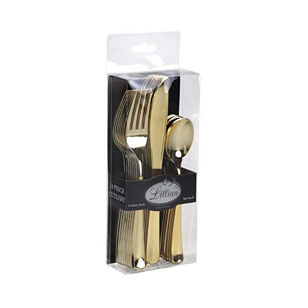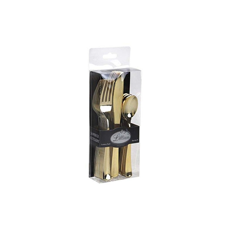 Lillian Tablesettings Premium Polished Plastic Cutleries, Full Size, Gold