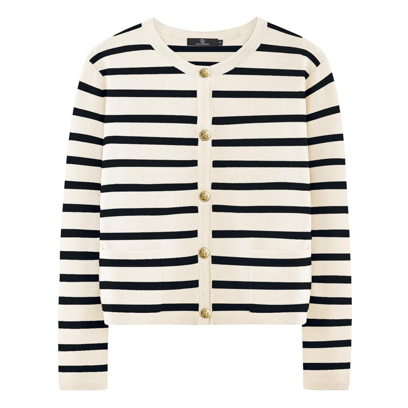 - The knitted cardigan sweater is decorated with fashionable gold buttons, which makes you very eye-catching in the crowd !