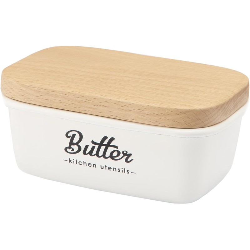 Lilly White Enameled Butter Case, White, Size: Approx. W15, D10, H6.7, LW-221