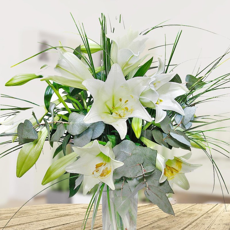 - đ Bouquet with 7 White Lilies, Eucalyptus and Grasses - White Lily Bouquet