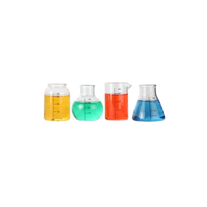 Lily's Home Mini Science Beaker and Flask Shot Glasses, Great Gift for Chemistry and Bio Grads, Nurses and Doctors, Clear (2 to 2 1/8" Tall, Set of 4 Assorted)