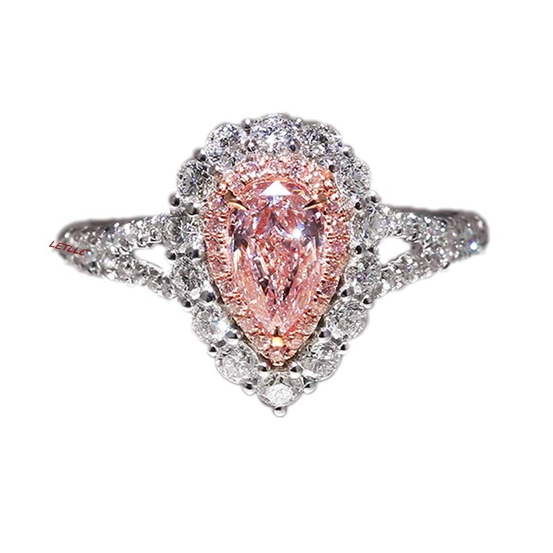 LILY TREACY 4ct CZ Ring Pink Pear Cut Cubic Zirconia Simulated Diamond for Women Promise, Engagement, Proposal, Wedding Size 7 8 9 (9)