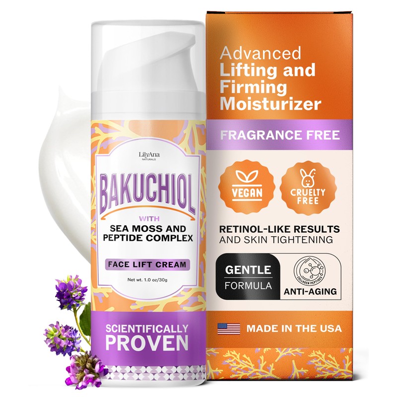 LilyAna Naturals Bakuchiol Face Lift Cream with Sea Moss and Peptide Complex - Face Cream for Women - Moisturizing and Lifting Facial Cream - Anti-Aging Overnight Moisturizer - Made in the USA - 1 oz