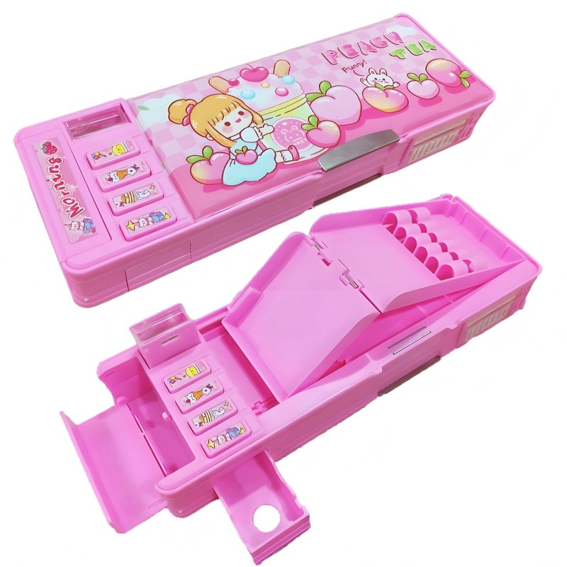 LilyBeauty Pop Up Multifunctional Case for Girls and Boys, Cute Cartoon Pen Box Organizer Stationery Sharpener Schedule Whiteboard School Supplies for Kids, Pink Girl, M, Caton