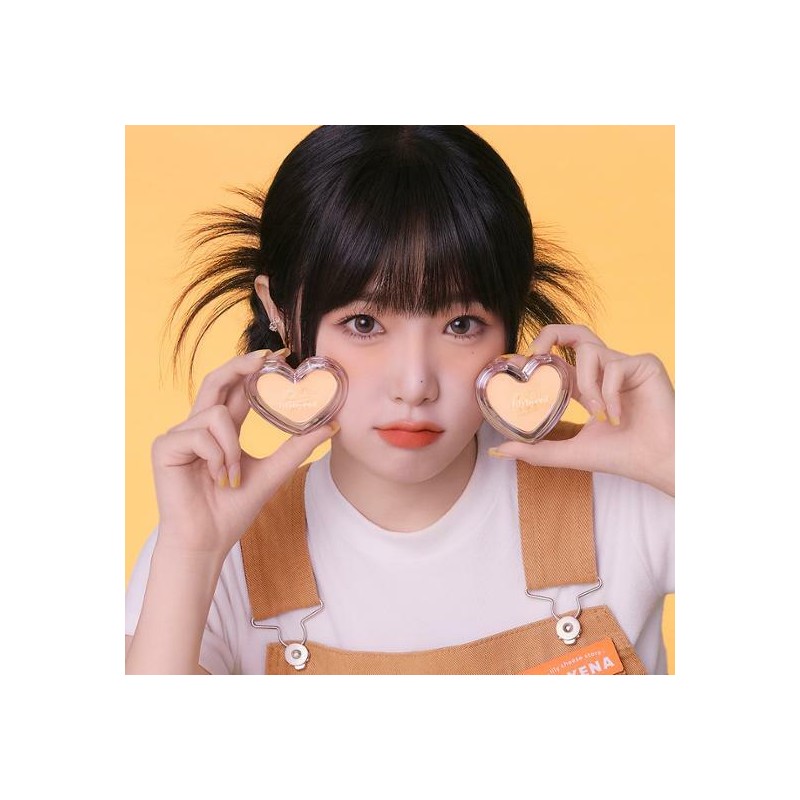 Take an appropriate amount on the brush and lightly blend it on the heart zone. Layer two to three times for a richer color.