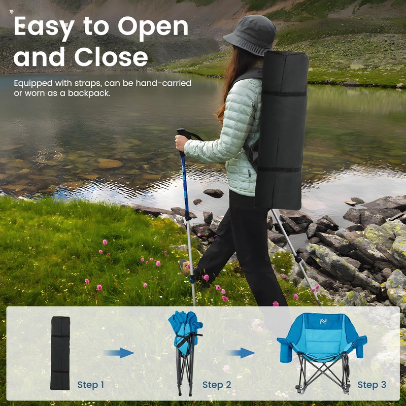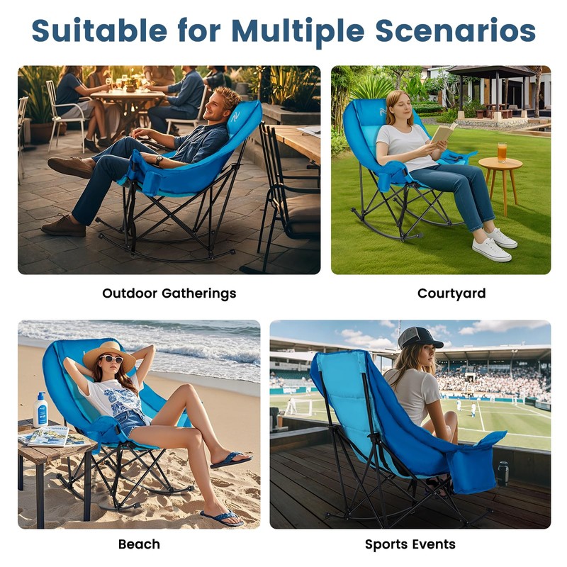 - 【Comfortable Rocking Camping Chair】The widened oversized rocking camping chair is fully padded, offering the utmost comfort when seated. Made of thicker oxford fabric, the camping chair is durable, tear-resistant, breathable and simple to clean. Ideal for long-term outdoor use