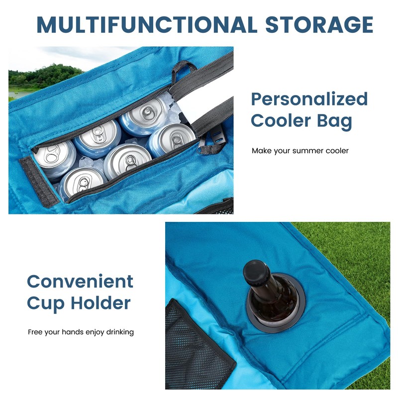 - 【Large Storage Space with Cooler Bag 】This folding camping chair has all the storage you need. The cooler bag fits six 200ml cans. The portable rocking chair with cup holder is also designed with unique mesh bag and beverage cup holder that make this lawn rocking folding chair more convenient to use
