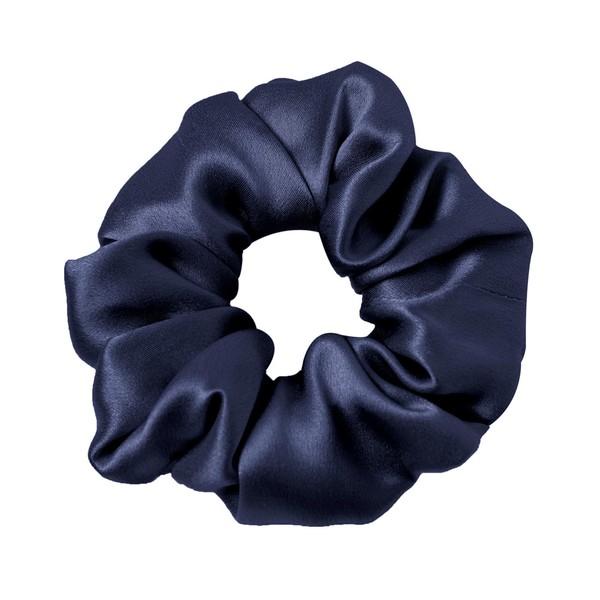 LILYSILK 100% Pure Silk Scrunchies Hair Elastic for Women Girls Hair Ties Ponytail Holder No Crease Gentle for Hair 1PC, Navy Blue
