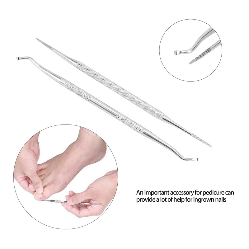 - Diseño curvo: penetración más precisa en la ranura de la uña, limpia la suciedad y las uñas residuales, levanta los bordes de las uñas y previene eficazmente las uñas encarnadas. El diseño de doble cara puede satisfacer sus diversas necesidades y brindarle comodidad.