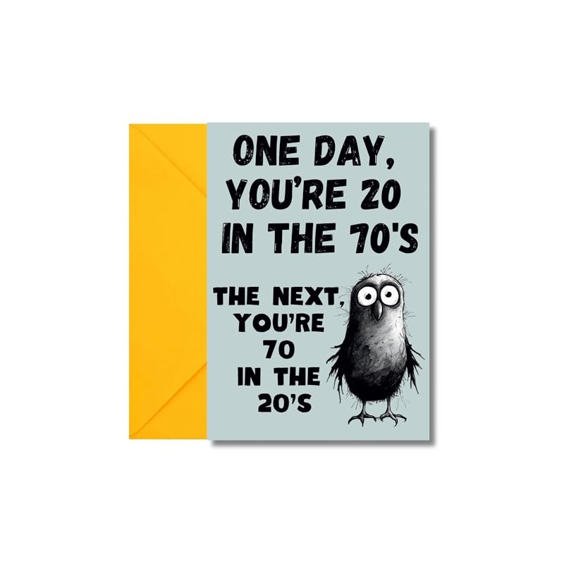 - NOSTALGIC & FUNNY 🎉 – “One minute you're 20 in the 70s, the next you're 70 in the 20s.” A clever and relatable design that makes this one of the best funny 70th birthday cards for men or women who love a good laugh.