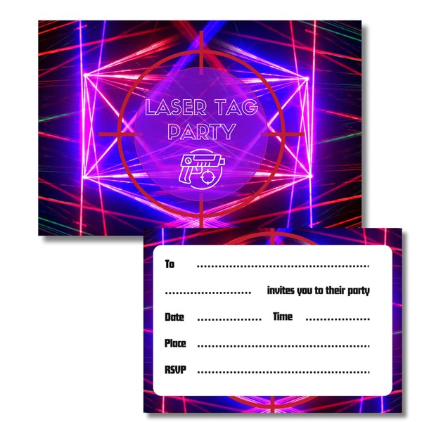 - DOUBLE-SIDED DESIGN: Show off your style with our professionally printed, double-sided invitations. Each one boasts vivid colors and clear details to excite your guests about the upcoming laser tag party! 🎉