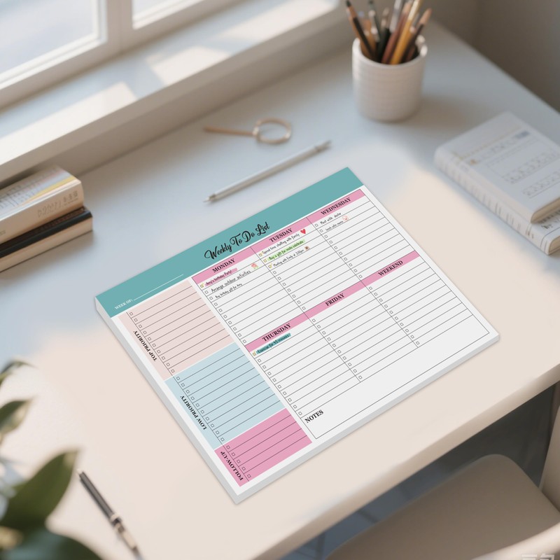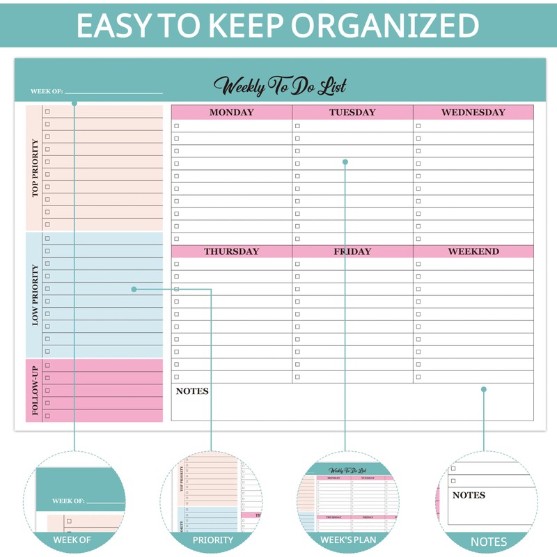 LIMBJEY Weekly Planner Notepad To Do List Pad, Undated Weekly Planner Notebook 52 Tear off Sheets─To Do List Notebook for Study Work.Fridge and Desk Use