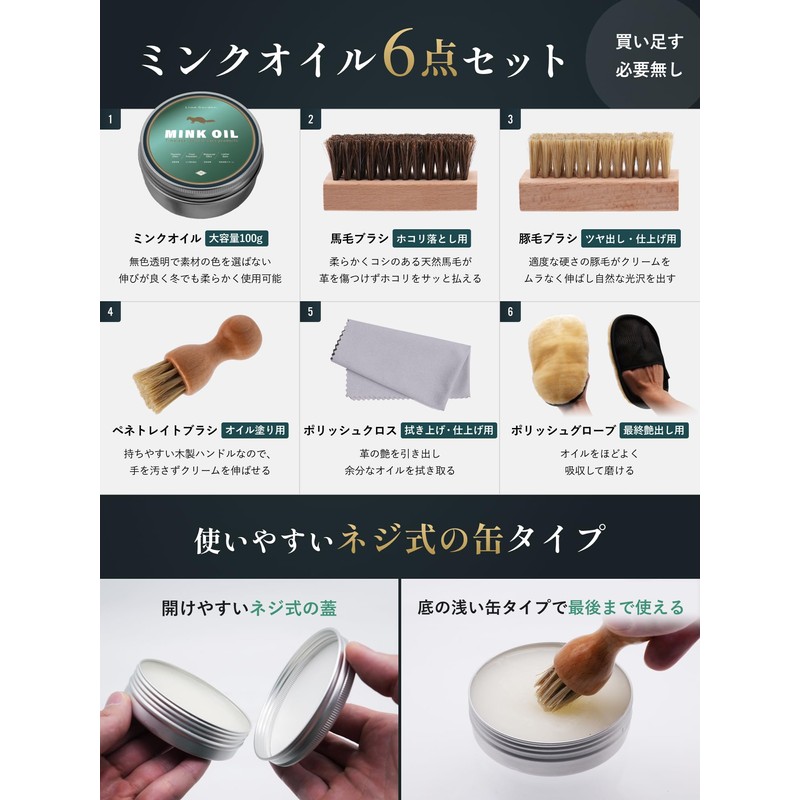 - Deep moisturizing to rejuvenate leather: Carefully selected mink oil penetrates deep into the leather fibers, providing thorough protection from drying and cracking from the inside. Rejuvenates lost oil and flexibility to restore high quality gloss and supple to moisturize, protect and polish with this single piece. Great for everyday maintenance, as well as premium care before long-term storage, and also provides water repellency