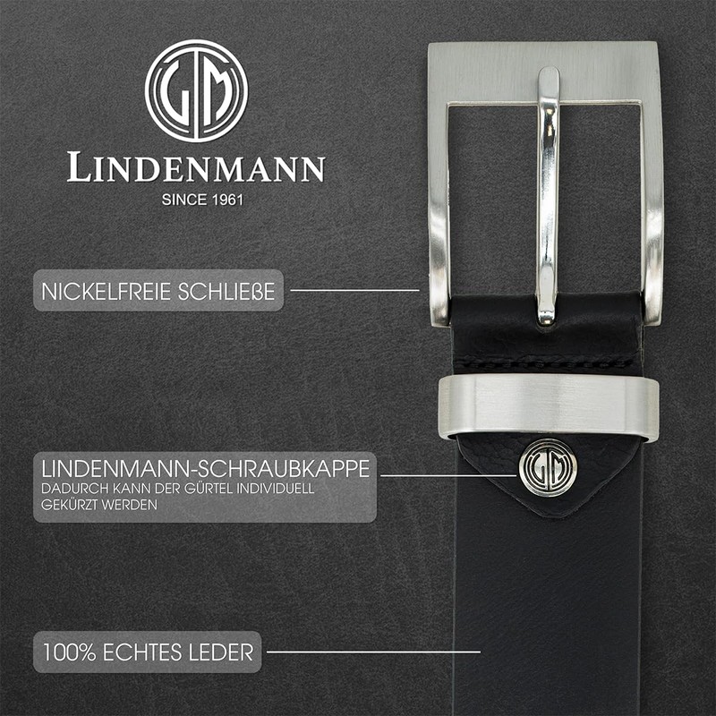 - QUALITÄT und Informationspflichten zur GPSR: Hersteller und verantwortliche Person für EU- Lindenmann GmbH & Co. KG, Lochäckerstr. 13, 75177 Pforzheim, www.lindenmann.com, Ledergürtel Herren schwarz aus 100% Vollleder-Gürtel