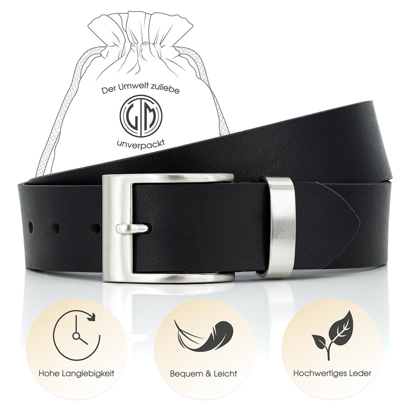 - SOLIDE BEARBEITUNG: Gürtel Herren schwarz. Der echt Vollrindleder-Gürtel ist weich und geschmeidig, dadurch bietet der Herren-Gürtel einen vorteilhaften Tragekomfort. Die fein gebürstete Dorn- Schnalle schont durch ihre Abrundungen und glatten Flächen das Leder.