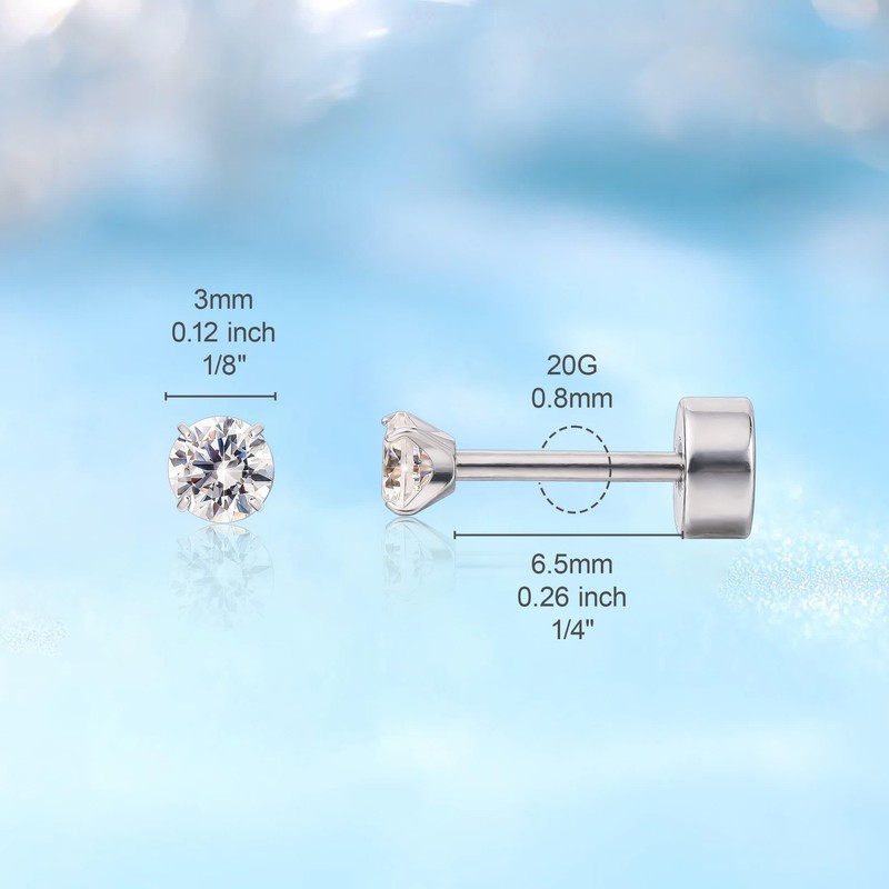 - Size: Gemstone Diameter 2 3 4 5 And 6mm; Post Length:6mm, Gauge:20G=0.8mm. The Earrings Feature a Screw-In Flat Back Design, Ensuring The Studs Stay Securely In Place. They Can Be Worn As Nap And Sleep Earrings, As Well As During Swimming And Physical Activities.