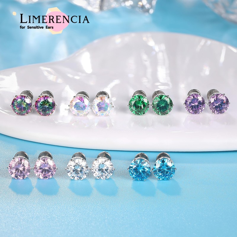limerencia Pure Titanium CZ Stud Earrings Hypoallergenic F136 Implant Grade Earrings with 5A Simulated Diamonds Stud Earrings for Sensitive Ears, Titanium