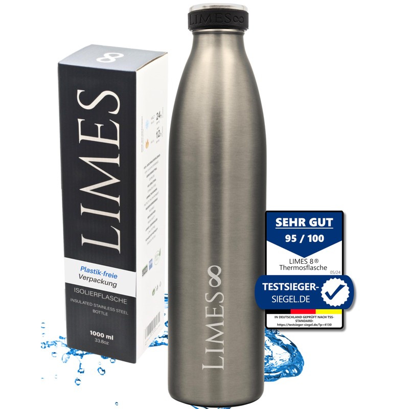 Limes 8 Thermosflasche 1L "FourSeasons" [HEIß & KALT] Trinkflasche Edelstahl 1L - Auslaufsichere Trinkflasche 1L Kohlensäure geeignet - Isolierkanne - Thermo Trinkflasche für alle 4 Jahreszeiten