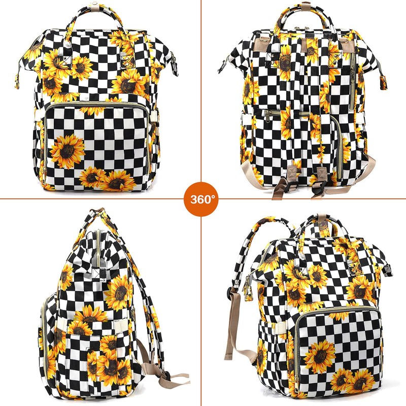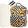 LIMHOO 3 in 1 Diaper Bag Backpack, Multifunction Large Baby Bags with Changing Pad & Stroller Straps, Waterproof Nappy Bag for Mom Baby Care (Checkered Sunflower)
