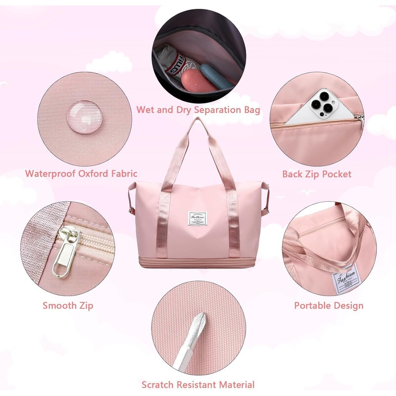 LÍMITE-MX Bolsa De Viaje Expandible Para Hombre Mujer,Bolsa Deportiva Para Gimnasio,Maleta De Mano Para Avión Carry On,Bolso De Noche De Fin De Semana De Un Hombro Para Mujer De Gran Capacidad,Rosa
