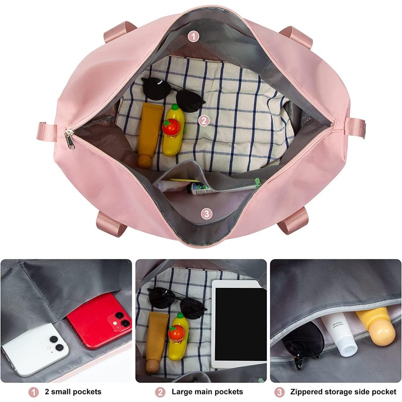 - 【Gran Capacidad Y Conveniente Para Llevar】Tiene un bolsillo principal y varios bolsillos pequeños para guardar sus pertenencias. Se puede usar como bolsa de viaje, bolsa de gimnasia, bolsa de mamá, bolsa de compras... esta bolsa multifuncional puede satisfacer sus necesidades.Maleta Bolsas Deportivas tiene diferentes estilos de transporte, mano, hombro, colocados en maleta,lo que lo hace conveniente para viajar y liberar sus manos..