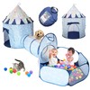 LimitlessFunN 4pc Kids Pop Up Play Tent, Crawl Tunnel, Ball Pit | Includes Star Lights & Carrying Case |, Children Indoor Castle Playhouse for Boys & Girls, Toddlers, 47" D x 126" W x 53" H