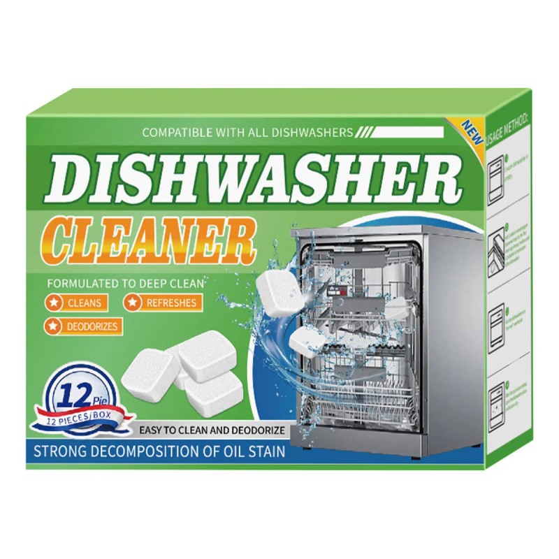 12 pastillas efervescentes limpiadoras de lavavajillas para eliminar grasas y manchas pesadas
